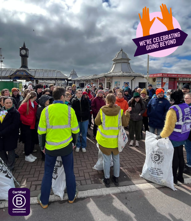 B Tidy Beach clean-up in Brighton - 105 volunteers, both from B Corps and the local community, spent a morning cleaning up Brighton’s beaches and city centre. Pala Eyewear, Pura Aventura, The Body Shop, Tilt, Bird and Blend, Finisterre, Propellernet, EQ Investors, GOAT Digital, Selective Asia, Driftime and Leap teamed up to be a force for good. This community-building experience was such a success that conversations have begun with the local council to identify more volunteering opportunities in the local area.