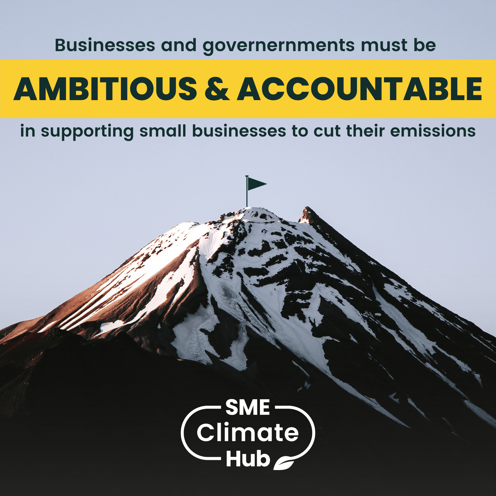 The SME Climate Hub equips SMEs with the tools they need to assess and reduce their emissions, and over 5,000 businesses are already committed to taking action. We cannot reach global emissions goals without these businesses on board, but governments and corporations must join us in facilitating their action. Small businesses, meanwhile, must continue to do their part. Encourage others to take action through the SME Climate Hub.