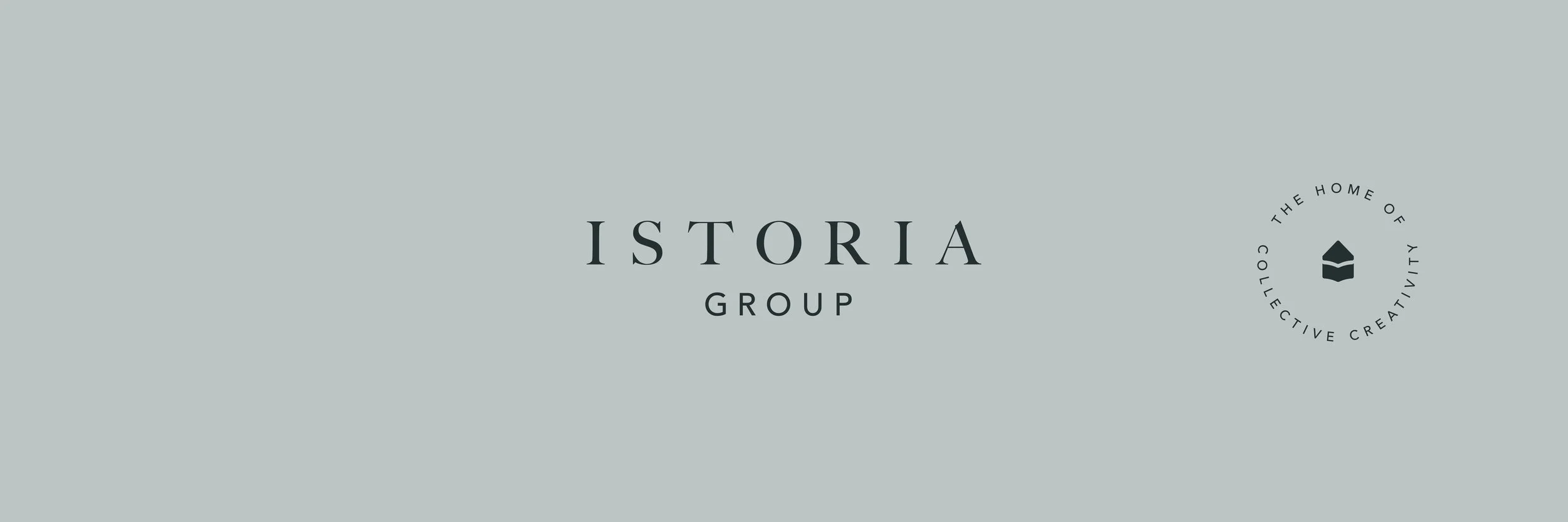 The Istoria home icon device links all sub-brands to the group. Our brand icon comprises a home shape, an open book and pencil top to collectively represent Istoria Group’s assets and strapline ‘The Home of Collective Creativity’. It brings to life the meaning of the word Istoria – the Greek word for ‘story’. We are storytellers.